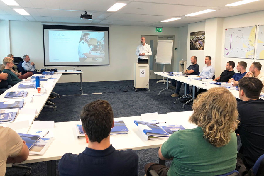 Een nieuwe groep van 18 cursisten wordt de komende maanden bij NNVO opgeleid tot VTSO (Vessel Traffic Service Operator). Op de openingsdag op 13 januari werden zij welkom geheten door kerndocent Bas Struijk, op de locatie HNK Rotterdam Scheepvaartkwartier.